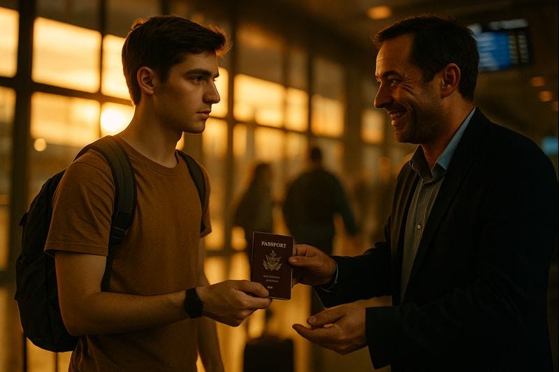 He offers to “help” with your visa, asks for your passport.